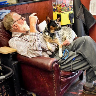 Each of us hope you have a favorite barber, and even better if they work here. Kids and Dogs are allowed to be kids and dogs. If that is a problem, then this is not the place for you. If it gets really busy, we will crank the volume of the music. If the music is too loud to speak, it means we are having a great day.